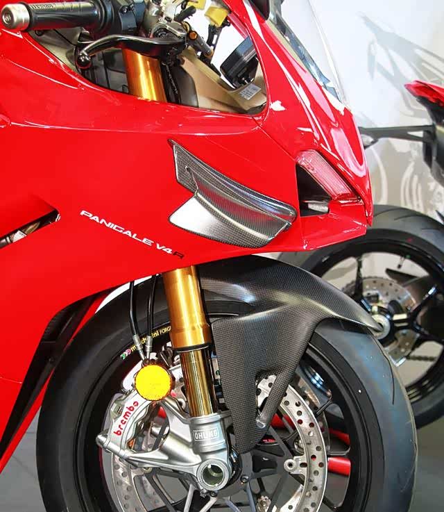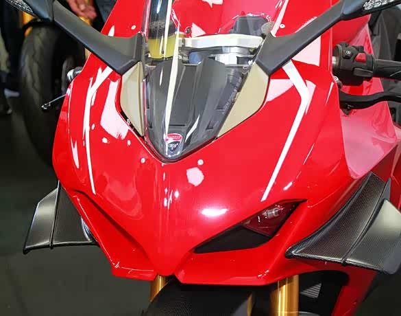 而加强下压力的碳纤维定风翼,厂方强调技术来自Motogp,配合先进的电子功能(例如循迹系统),战车在加速期间有效抑制起头问题,减少飘浮感,车身在急速刹车时候更稳定,有助攻弯。事实上,近年在Motogp兴起的定风翼潮流全赖DUCATI创造,DUCATI也是花最多资源开发定风翼的车队。另一方面,WSBK赛会在2018年修改赛例,容许战车使用定风翼,因此吸引车厂把该技术引入市贩SUPERBIKE上,但车迷要等到2019年WSBK赛季,才会看见使用定风翼的战车出场,例如今次介绍的V4 R。