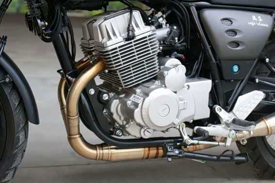 至于在配置方面, UK250前叉采用法斯特倒置减震,前制动为对向四活塞卡钳298mm双碟刹车盘,后单碟盘的三碟设计,标配了ABS防抱死系统,配合抓地力十分强的滕森轮胎,制动效果非常不错。在其他方面,油箱的储油量设计为13.5L,cafe版座高为790mm,车重145kg。