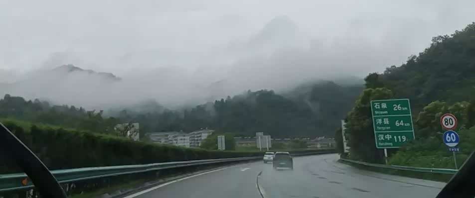 这次假期其实朱老师本来打算5月份休的,无奈工作太忙,一直推到了7月底。7月21日早上9:30,两辆车两家人在指定地点汇合,分配好手台,就向着第一天的目的地出发了。我儿子知道要带他出去玩住酒店,还有最好的小伙伴高兴的不得了,拿着手台在车上相互聊天,两位司机也不断通过手台分享实时路况,一路上欢声笑语。朱老师说这条线路他琢磨了很久,好吃好喝好玩,唯一担心的就是下雨。果然一进秦岭就开始多云转阴,到宁陕开始大雨和晴天轮番上阵,雨中的秦岭有一种别样的美。这时候儿子给我说:“妈妈你看,云彩面包!”我抬头一看,一朵朵白云就似绸缎般缠绕在山间,好似仙境。