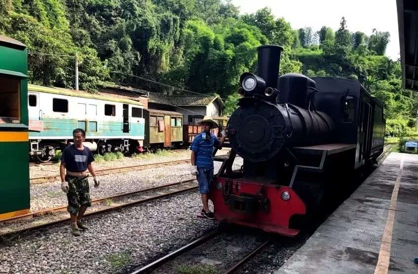 跟可爱的小猴子们say goodbye之后,我们就离开峨眉山,去寻找孩子们喜欢的托马斯小火车。动画片里的窄轨蒸汽小火车,如今国内只有在乐山市南边的犍为县才能找到。我们到嘉阳小火车跃进站已经下午4点了,而旅游列车最晚一趟是下午3点。正在我们以为要铩羽而归的时候,站台上等车的姐姐说你们可以做我们通勤的列车啊,只是舒适度差点,但车票比旅游票便宜的多,一站路一个人5块钱。
