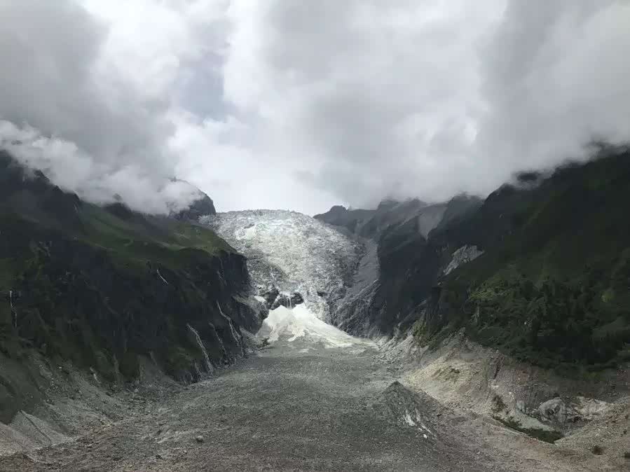 海螺沟以低海拔现代冰川著称于世。其中,大冰瀑布,高达1000多米,宽约1100米,比著名的黄果树瀑布大出十余倍,瑰丽非凡。海螺沟景区地形复杂,气候类型特殊,山下长春无夏,年平均气温在15摄氏度左右;山顶终年积雪,年平均气温在-9摄氏度左右。坐了1个小时景区大巴,再从4号营地坐缆车,看到巨大的冰瀑布,一边拍照一边拉紧了冲锋衣,因为真的很冷。不过因为有云,没能看到远处的贡嘎雪山,人生何处不遗憾,给下次来留个借口。