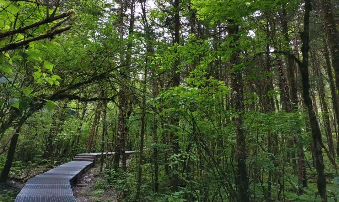 从4号营地下来一路走步道从原始森林中穿过,步道两边植被茂盛,郁郁葱葱,山间小鸟叽叽喳喳叫着,偶尔有小溪流潺潺流过。呼吸着清凉湿润的新鲜空气,真的不要太幸福。听导游说其实夏天对海螺沟是淡季,如果春秋冬来海螺沟,可以住下来,看雪山、赏森林、泡温泉才是海螺沟最美的打开方式。