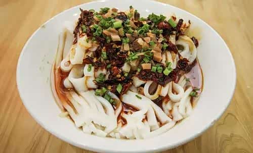 傍晚我们就来到了广元,城市虽然不大,但嘉陵江穿城而过,最关键的是,吃一次大名鼎鼎的张姐夜凉面。傍晚才开门,吃饭要排队,到底是什么东西这么好吃?嗯,你们可以理解成四川版的热米皮,所谓的凉面非常像我们的米皮,我问老板:“不是凉面吗?怎么是热的?”老板说因为人太多,根本等不到凉,可见生意有多火。吃完江边走一走,利州广场逛一逛,旁边有不少推车的小摊再次吸住了我的胃。有一位卖冰粉的大哥,看我是外地游客,那个料啊,加的碗都盖不上了,多好吃你们自行脑补,哈哈。