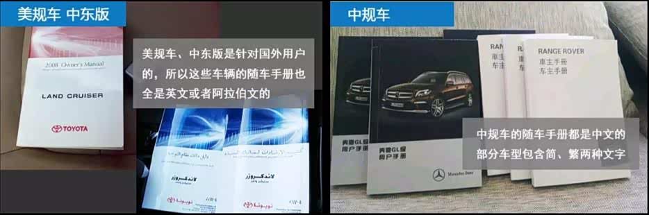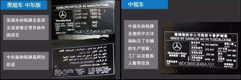 结合以上六个特征,基本上就可以判定此车是否为美规或者中东版。对于有意向购买美规中东版汽车的客户请注意,一定要多加留意手续问题,其中过户也会有限制要求,请在购买前务必查验清楚,最好能去车管所确认一遍。