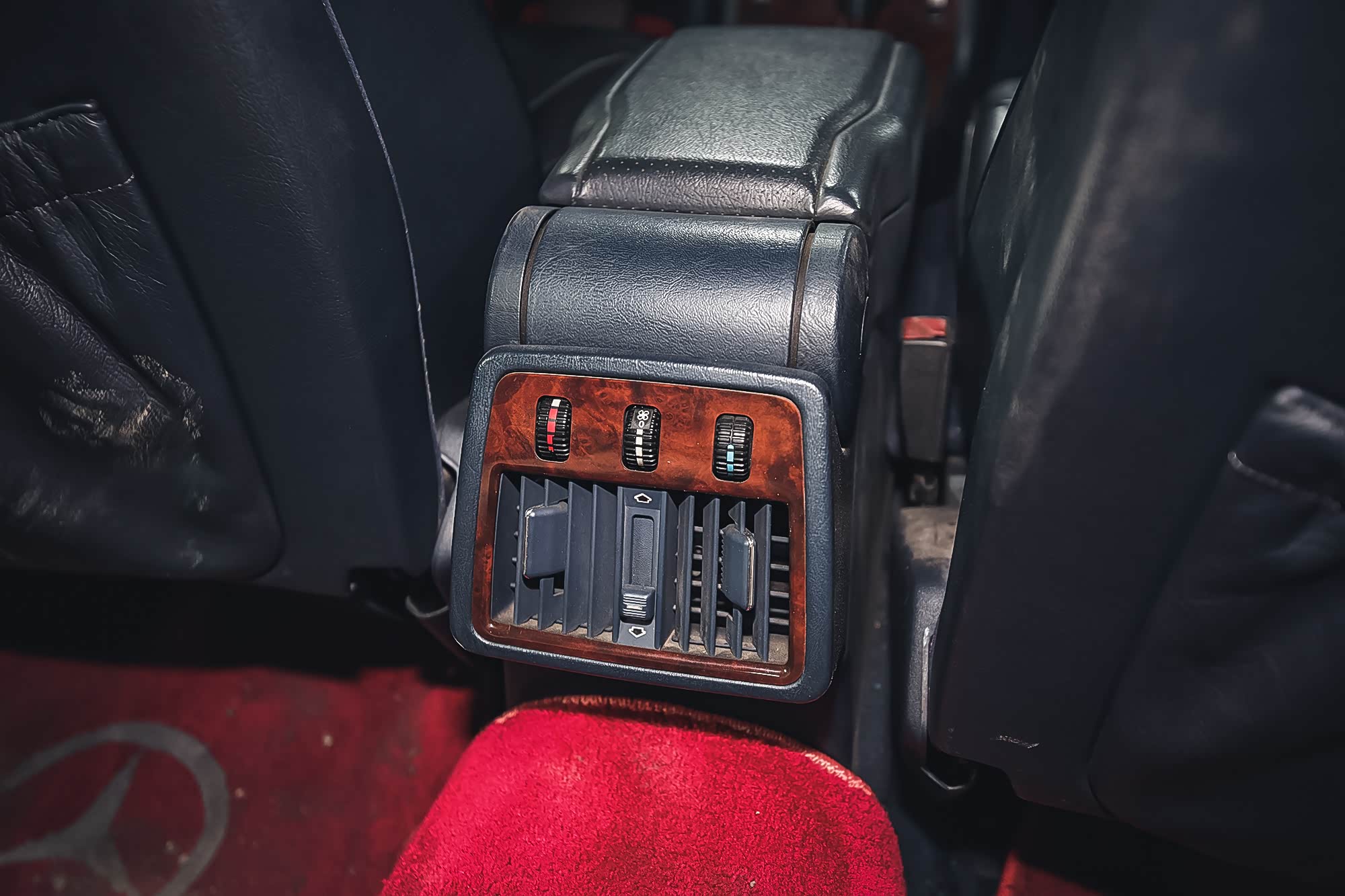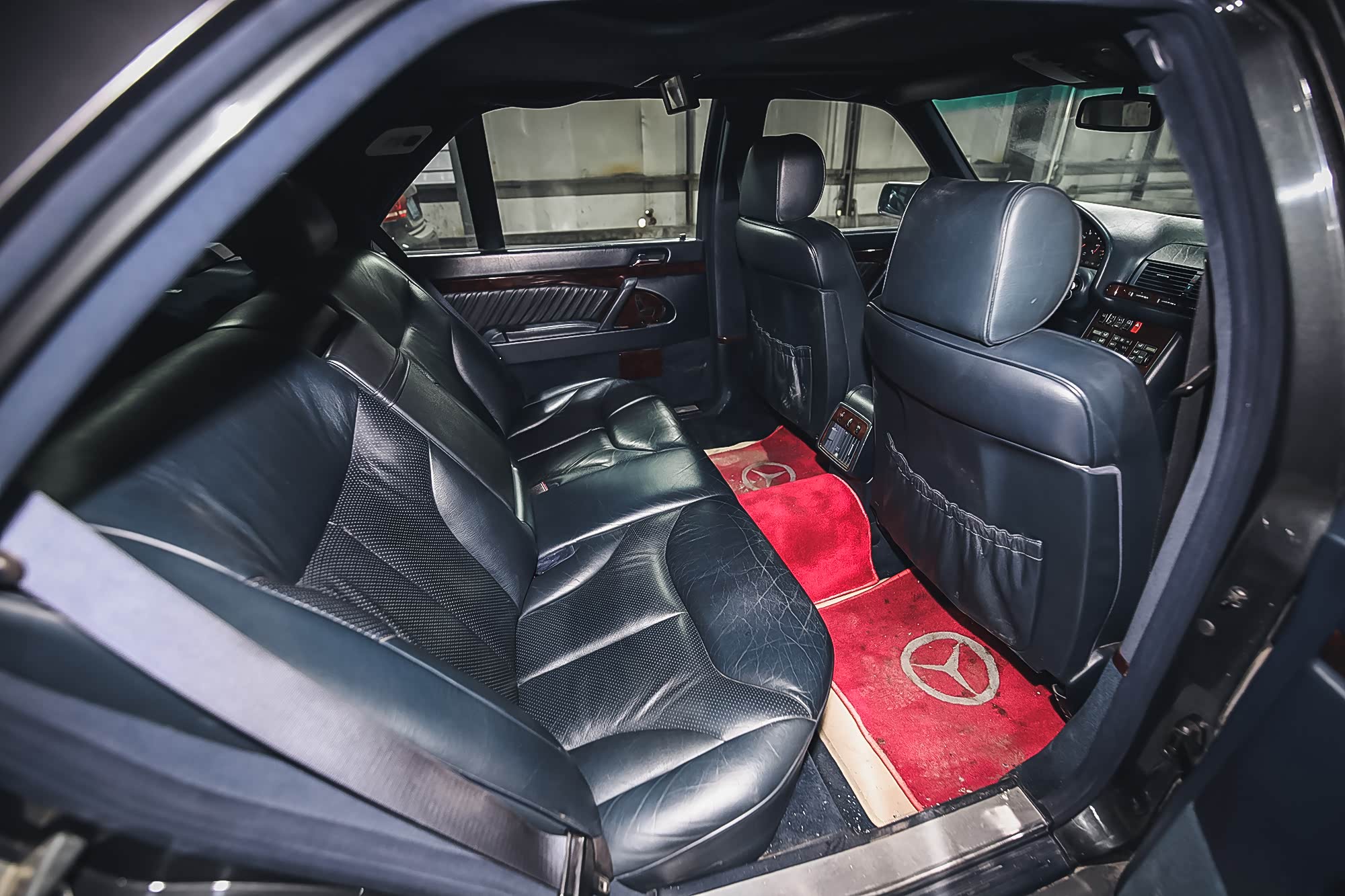 “坐奔驰”的说法由来已久,如果你乘坐过这台老S600的后排,会发现现在的S级与之相比座椅也会有些偏硬,因为它实在是太柔软了,完全就是个大沙发。当然,在人体工程方面,毫无疑问现在的S级更加优秀和舒适。这个红色的奔驰标地垫有点土味,到是也不违和。后排尽管很宽敞,但跟现在的S级比仍然差点意思,毕竟,那时候字母后面还没有L这个后缀。