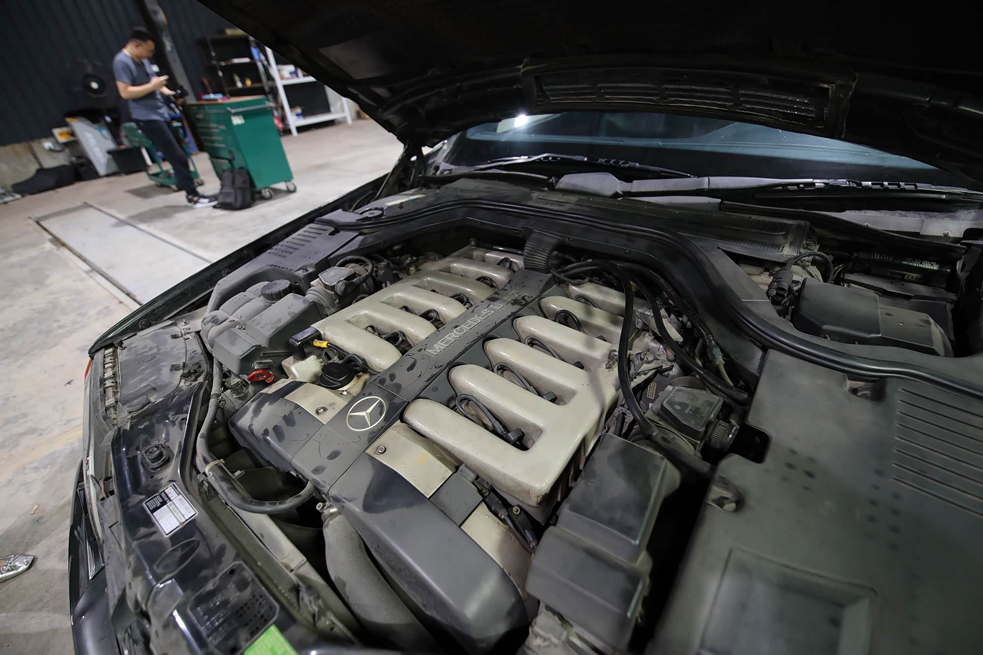 V12发动机的体积十分庞大,左右两边各有六个阀门,可以说是奔驰最粗暴的一代12缸机器。