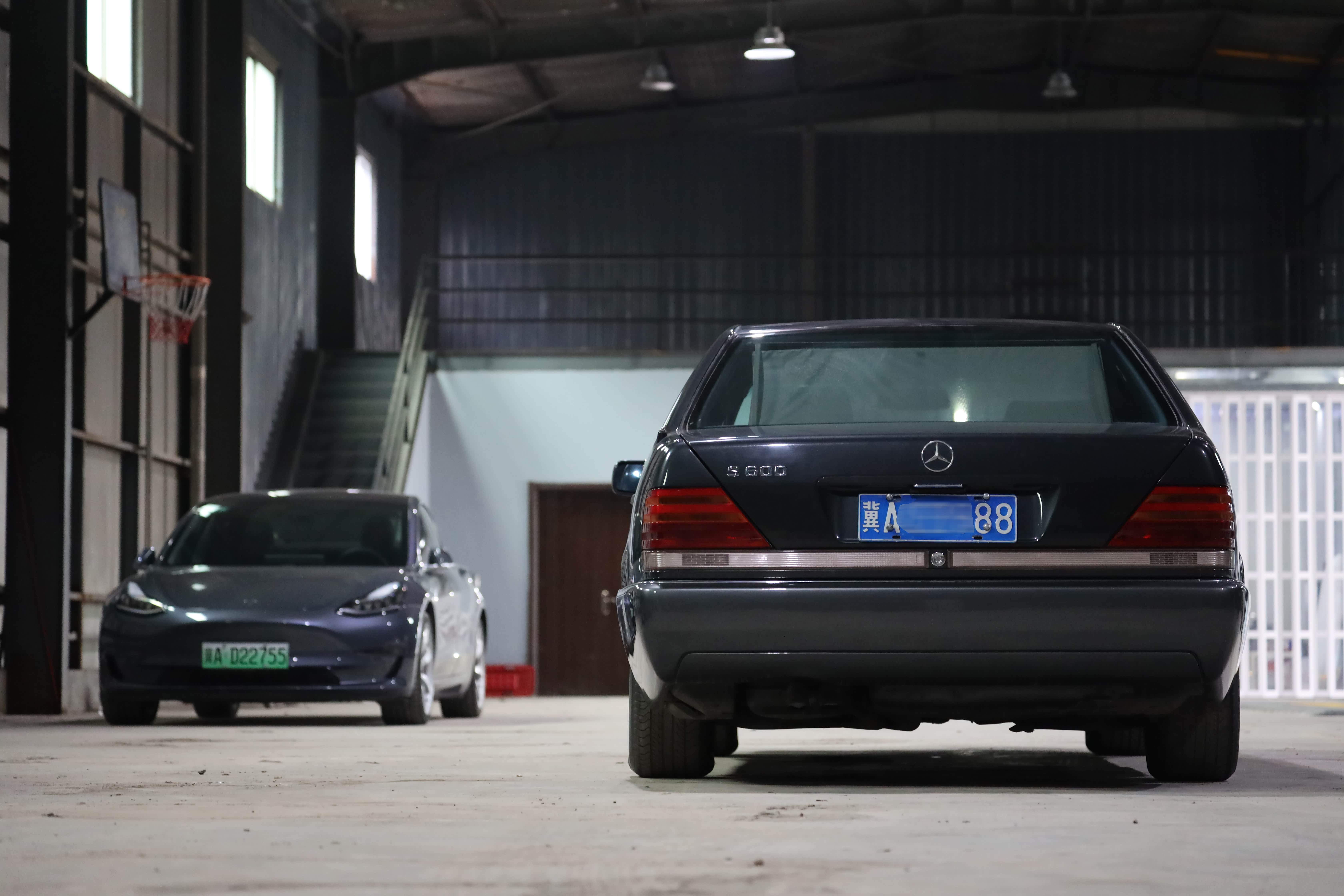 有一点不明白的是,W140奔驰S600低调的选择了隐藏式排气,这或许让它的尾部气势有点弱化。这张照片,我特地把左侧的特斯拉MODEL 3融入了进来。代表未来的新能源车和代表过去的霸主同框,很有意味的一幅画面。