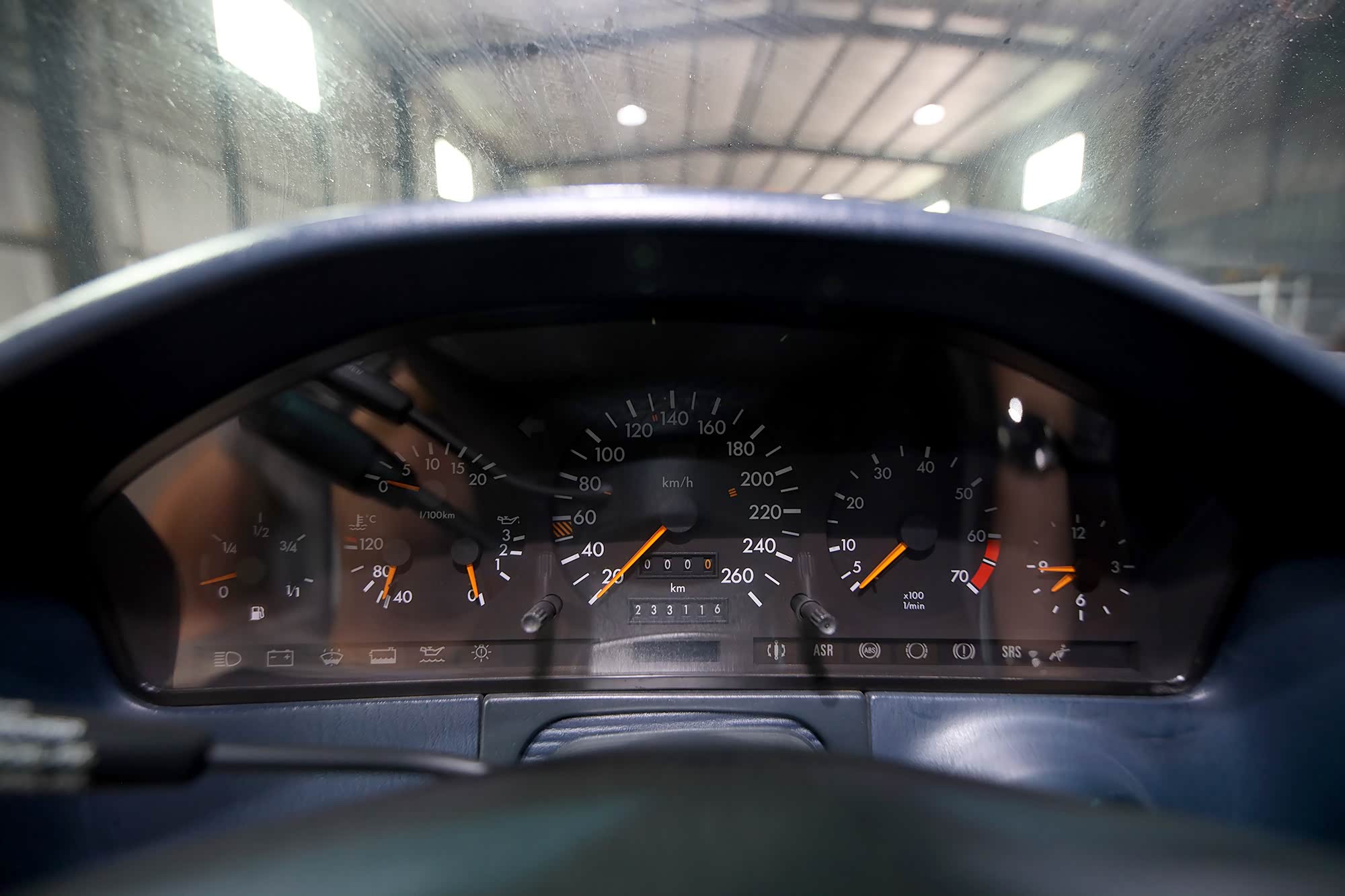 看到这个仪表盘的时候,你一定还是认为还是现在的12.3英寸全液晶仪表盘舒服。毕竟,这种最原始直接的表,读取起来让人眼晕。这些表从左到右依次是:油量表、油温/油量/油耗综合表、速度表、转速表和.....机械表,再看看现在即使是廉价车型的仪表设计,是不是都秒杀掉这台老S600?里程的显示在23万公里左右,大概能绕地球四圈。