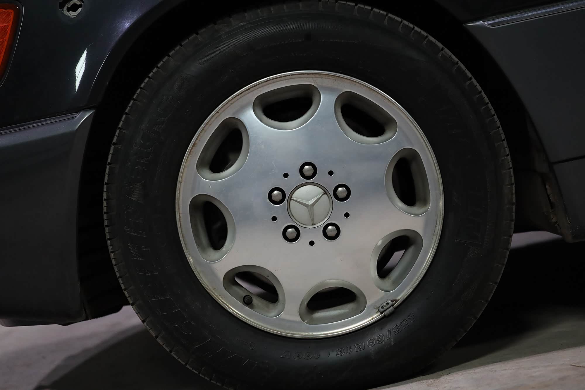 这种看上去傻傻的镀铬轮毂到现在也是奔驰S600的专用样式,只是轮圈的尺寸用现代的眼光看实在小的可怜,只有16英寸。这是最低配的桑塔纳和捷达用的尺寸。轮胎规格为235/ 60 R16,这样的扁平比确实保证了舒适性,但运动性不可能兼得,也说明,尽管有12缸的底气,但那个时候的旗舰轿车,不会过多强调运动性的,而是全心全意为了后排的舒适性服务。