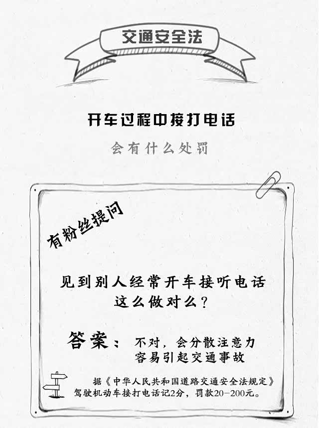 根据《中华人民共和国道路交通安全法实施条例》第六十二条(三)项明确规定:“驾驶机动车不得有下列行为:拨打接听手持电话的行为”,违者罚款200元,扣2分。