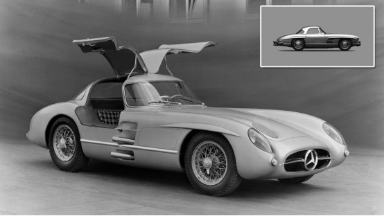 当年300 SL车型最辉煌的时候当时正处于世界第二次大战,因奔驰所在的德国战败,奔驰正面临着极大的财务危机,而在美国纽约担任奔驰车辆销售的马克斯·霍夫曼提议将300 SL这款车型进行量产以解决资金困难的问题,从而有了我们现在看到的高人气的“w194”车量产型300SL。300 SL最大的特点就是它的欧翼门设计,当初并非因为时尚或是设计成这样,而是由于管状结构车身的设计缺陷,导致车门只能向上开启。但却在无意中成就了一代经典造型,可谓是无心插柳柳成荫了。值得一提的是,300 SL这款车型还搭配了史上第一台汽油直喷式发动机,当时博世制造的机械燃料喷气机安装在了3.4L的6、缸引擎上,与4挡手动变速器相结合,最大功率为215马力。