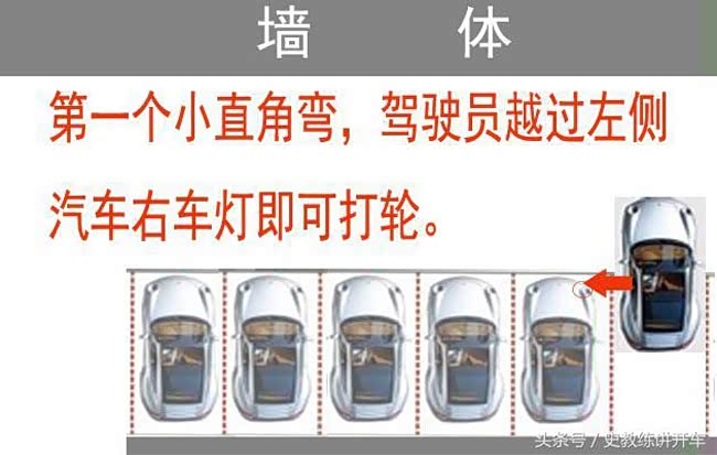 这里要强调,不是驾驶员看到右视镜和内角斜着成一线,而是真正的水平位置,再向右打方向。