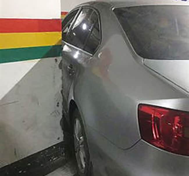 新手司机在经过直角弯路时,往往处理不好打轮的时机,打早了或者是打晚了,很容易出现类似下图中的刮蹭情况。