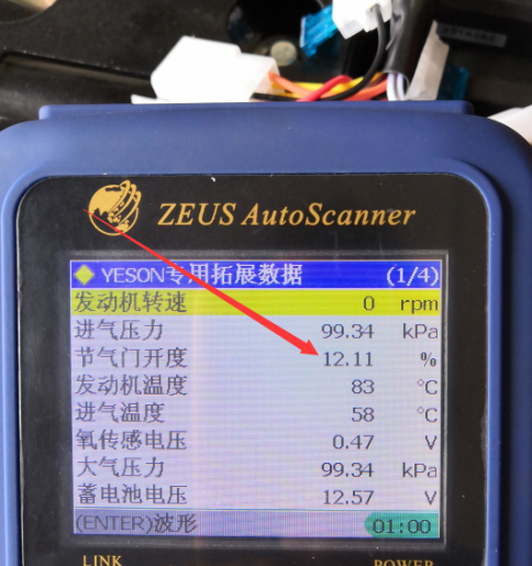 既然上面这些点上都没找到问题,那么用故障诊断仪进去看看有无历史故障码,并顺便检查一下数据流。从检查结果看,无任何故障码。但在浏览静态数据流时,有一项为节气门开度为百分之12的数据引起了我的注意。