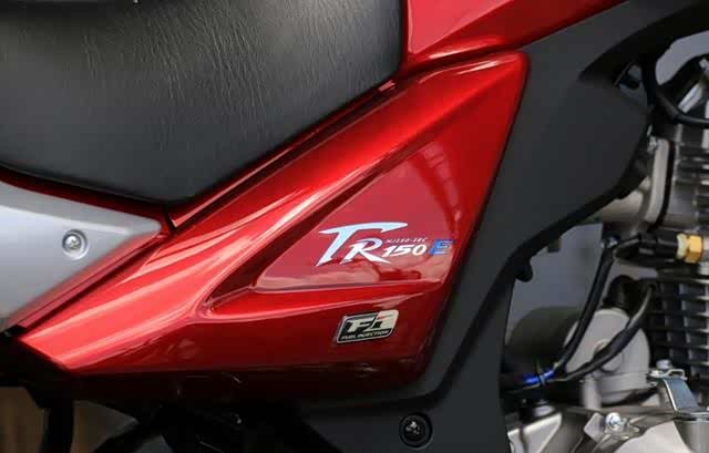 动力部分,豪爵铃木TR150E搭载一台单缸四冲程风冷发动机,实际排量149CC,使用电喷系统,压缩比为9.3:1,缸径*行程为57.3*57.8毫米,最大功率8.3千瓦,峰值扭矩11.4牛米,并且符合国四标准。官方给出的综合油耗是百公里1.75L,搭配10.7升的油箱容量,能够实现四百公里的续航里程。