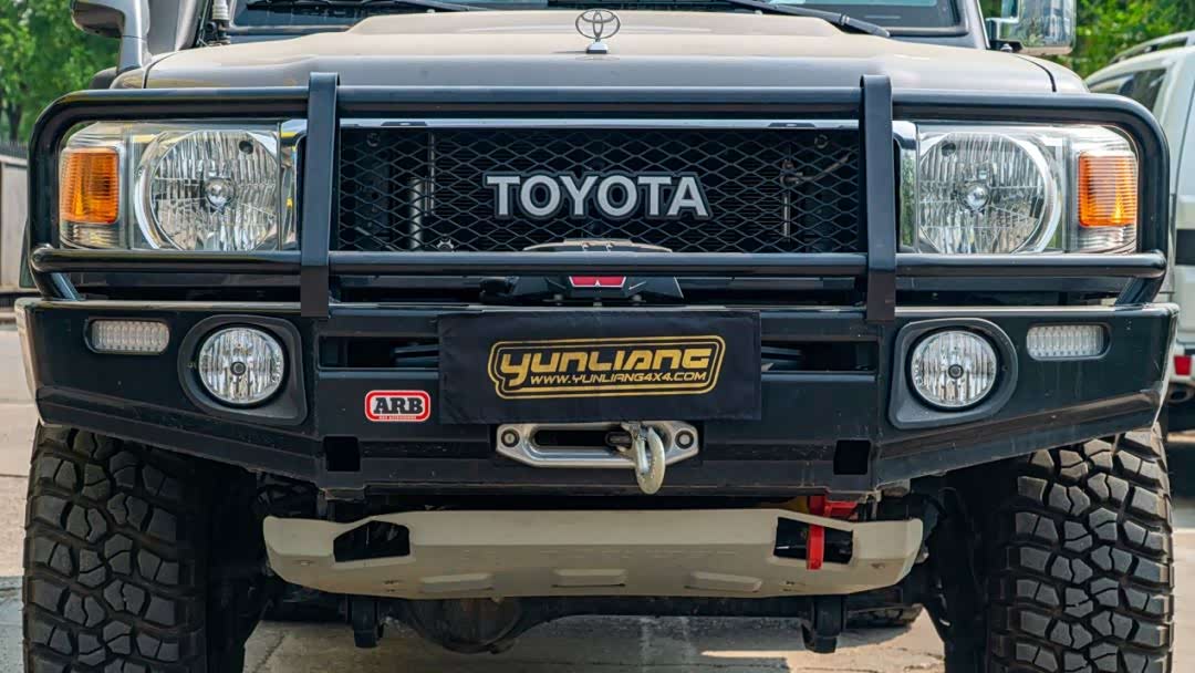 LC7系骨子里就自带一股穿越范儿,ARB的招牌牛栏杠为车辆提供了长途穿越必要的防护性,并且可以与76方方正正的前脸完美融合,毫无笨拙突兀的违和感。