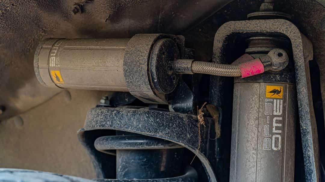 悬挂部分仍然采用我们熟悉的OME BP-51氮气避震,看家的旁路通道设计、可单独调节的压缩及回弹阻尼,让它成为同级别中能够将操控与舒适兼容得最好的产品。