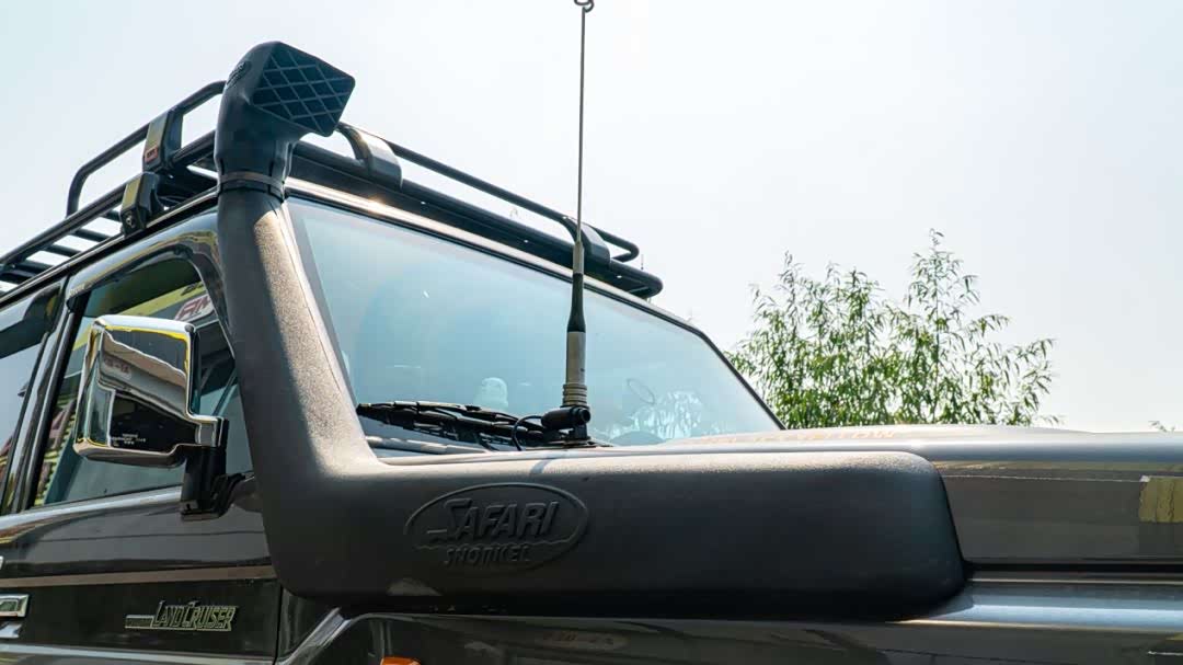 车侧的SAFARI涉水喉也是长途穿越的必备,更高的进气位置以及更长的进气通道,不仅提高了车辆的涉水深度,也可在沙漠或戈壁行驶时,减少沙尘对发动机的损伤。除此以外,机舱内还安装了连通前后桥包的ARB呼吸器,避免涉水时因桥壳突然受冷,而导致水从原厂泄压阀倒吸,损坏差速器,同时更通畅的换气,也可时刻降低桥包的内部压力。