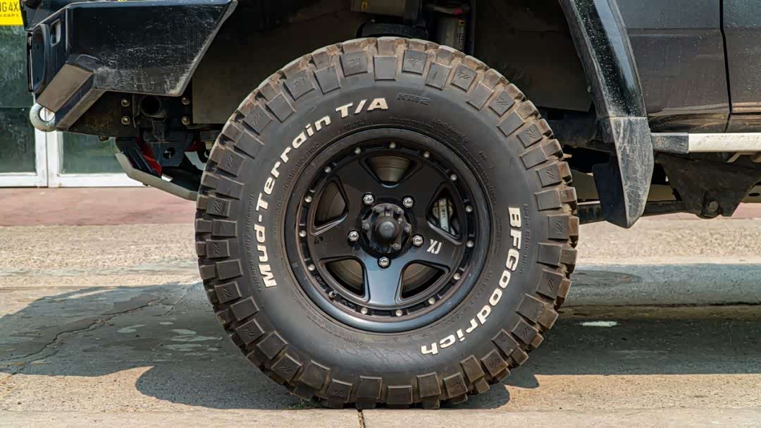 高强度的长途跋涉离不开足够强壮的轮胎,经典的百路驰KM2泥地胎可以轻松应对泥浆和岩石路况,并提供出色的防穿刺性能。305/70/R16的尺寸比原厂轮胎更宽更大,因此还要更改速比以重新适配扭矩。