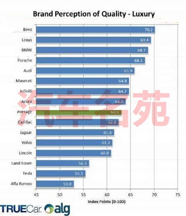 2019年质量最好的十大豪华车品牌公布,奥迪第5,凯迪拉克第9!