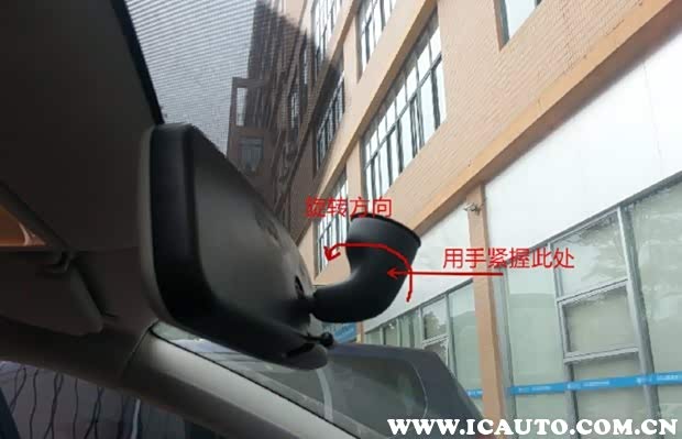捏住后视镜后的圆柱,然后逆时针旋转45度即可拆下,拆下后,内后视镜底座仍会贴附在前挡风上。安装时只要对准,然后顺时针旋转90度即可。其实并不难,但是一定要注意力度。