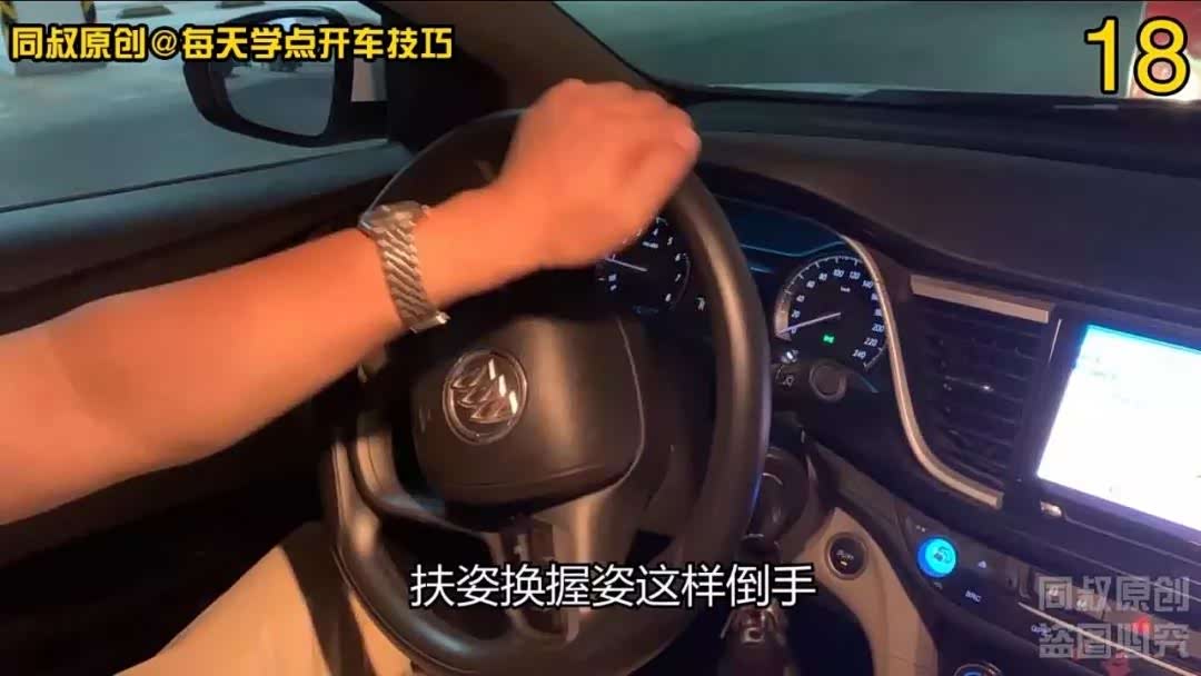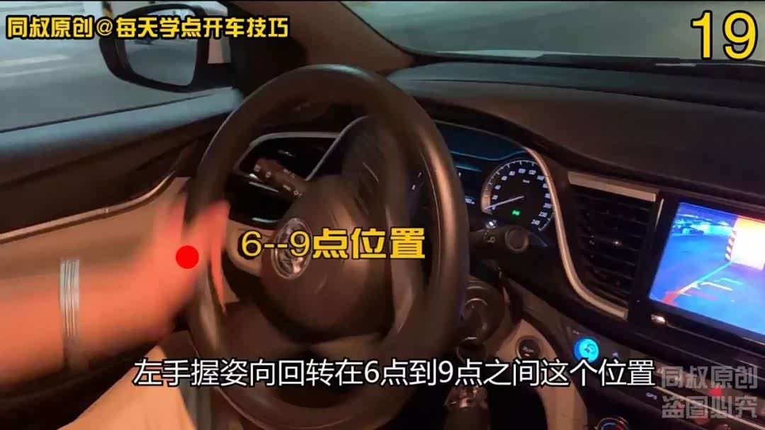 迅速往回转动方向盘,左手握住方向盘快速向右转动,每到9、10点位置时用手掌扶住方向盘换姿势,