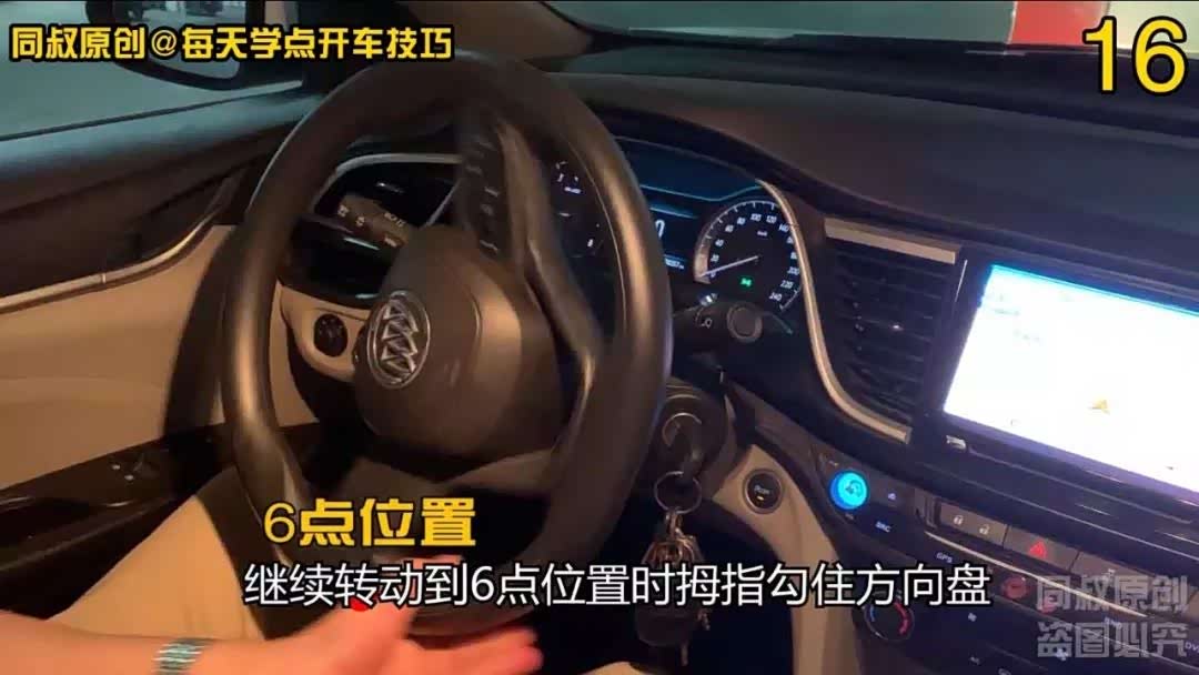 继续转动到6点位置时拇指勾住方向盘,