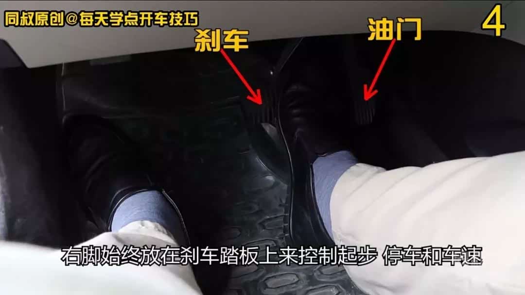 下面我就开车操作一下,在操作过程中始终使用怠速,不加油门,右脚始终放在刹车踏板上来控制起步、停车和车速,停车就踩刹车,起步就抬刹车踏板,不需要加油门,右脚始终在刹车踏板上从实踩到虚踩,再从虚踩到实踩。