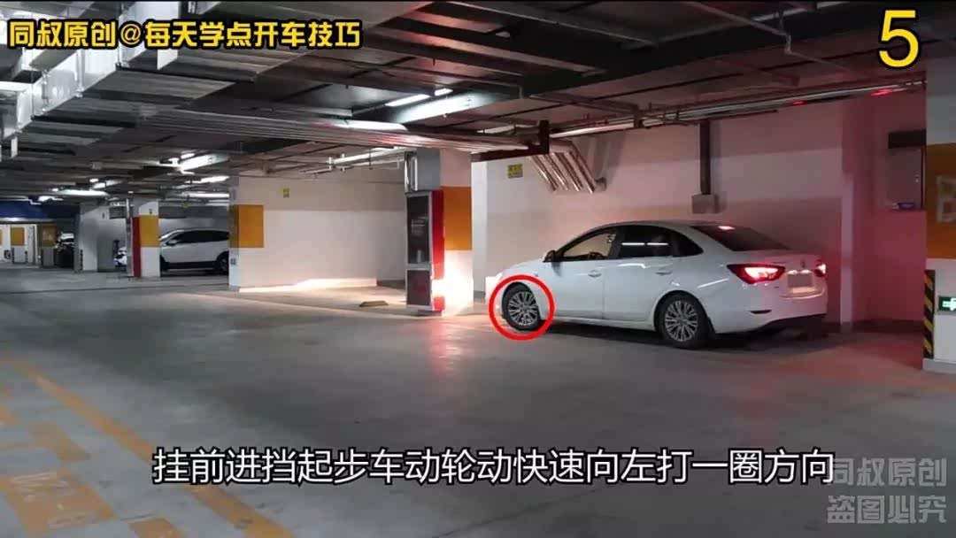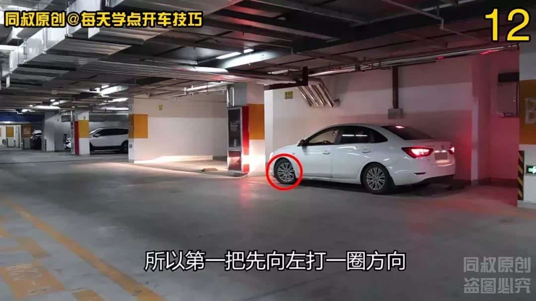 因为前方空间不够,一把左拐不能完成出库,所以第一把先向左打一圈方向,随即往右打满方向。