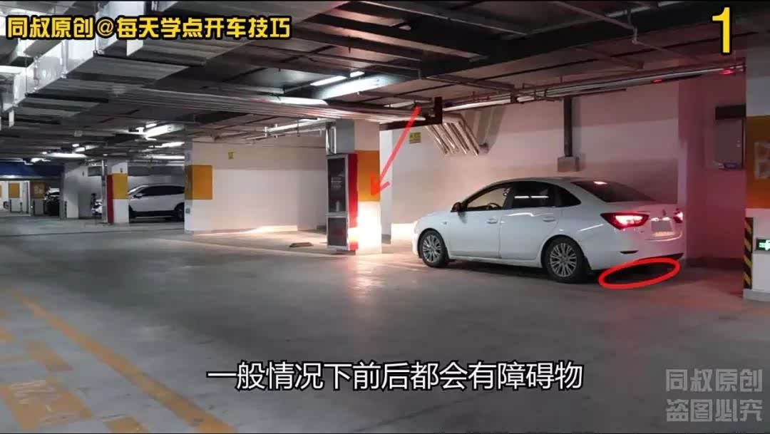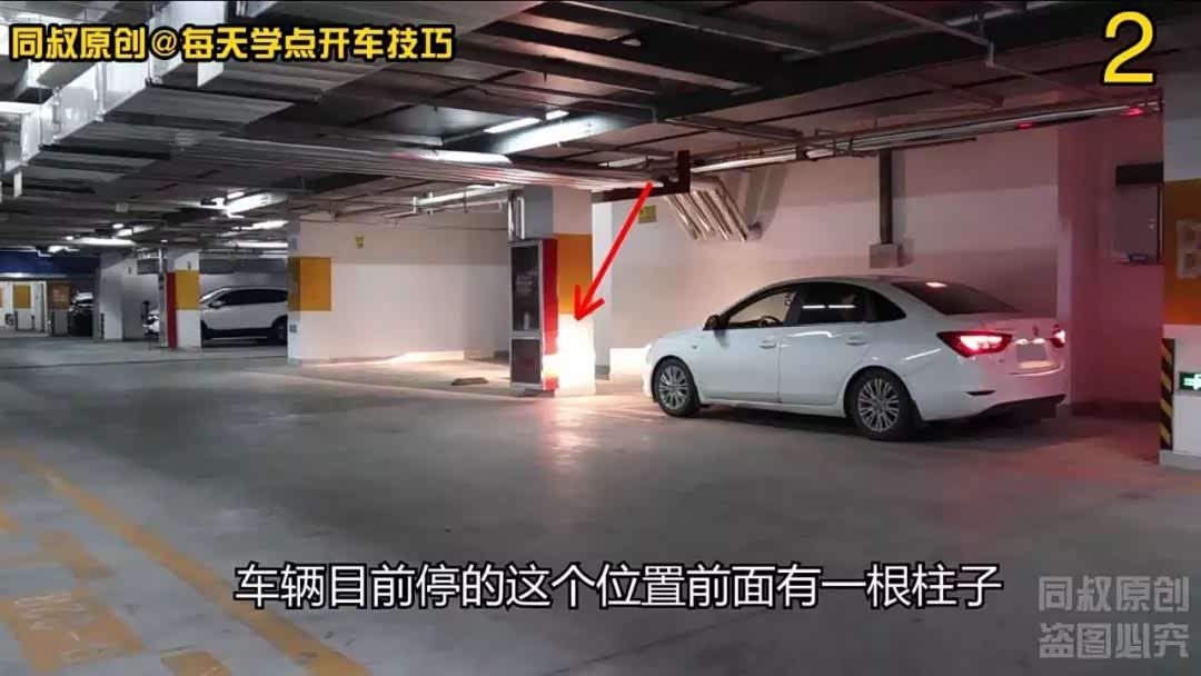 车辆目前停的这个位置前面有一根柱子,而且这根柱子比较靠外,出库时需要向左打更多方向才能拐出来。