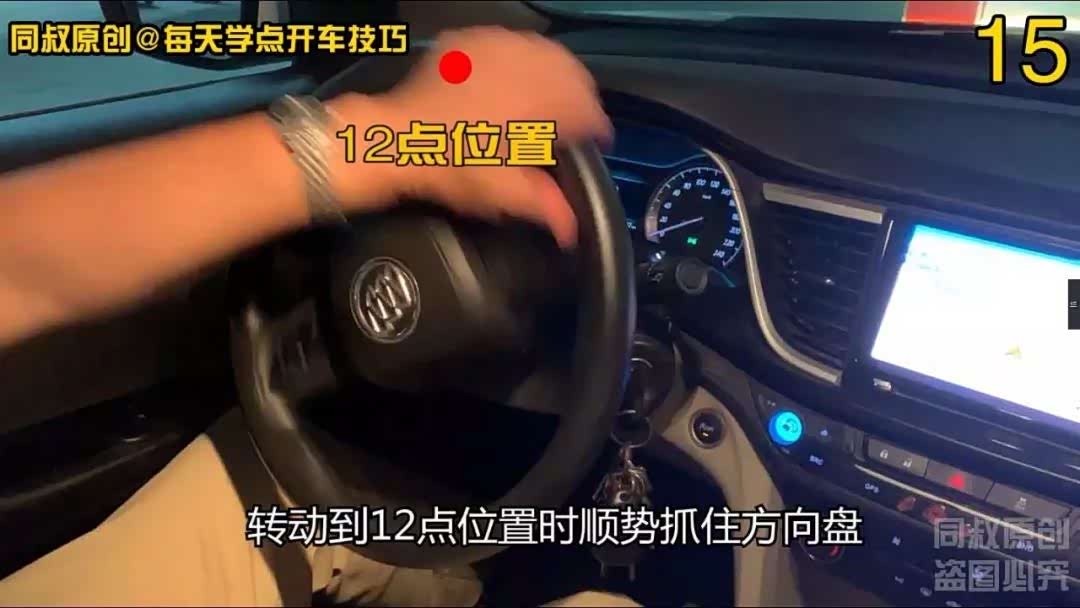 转动到12点位置时顺势抓住方向盘,