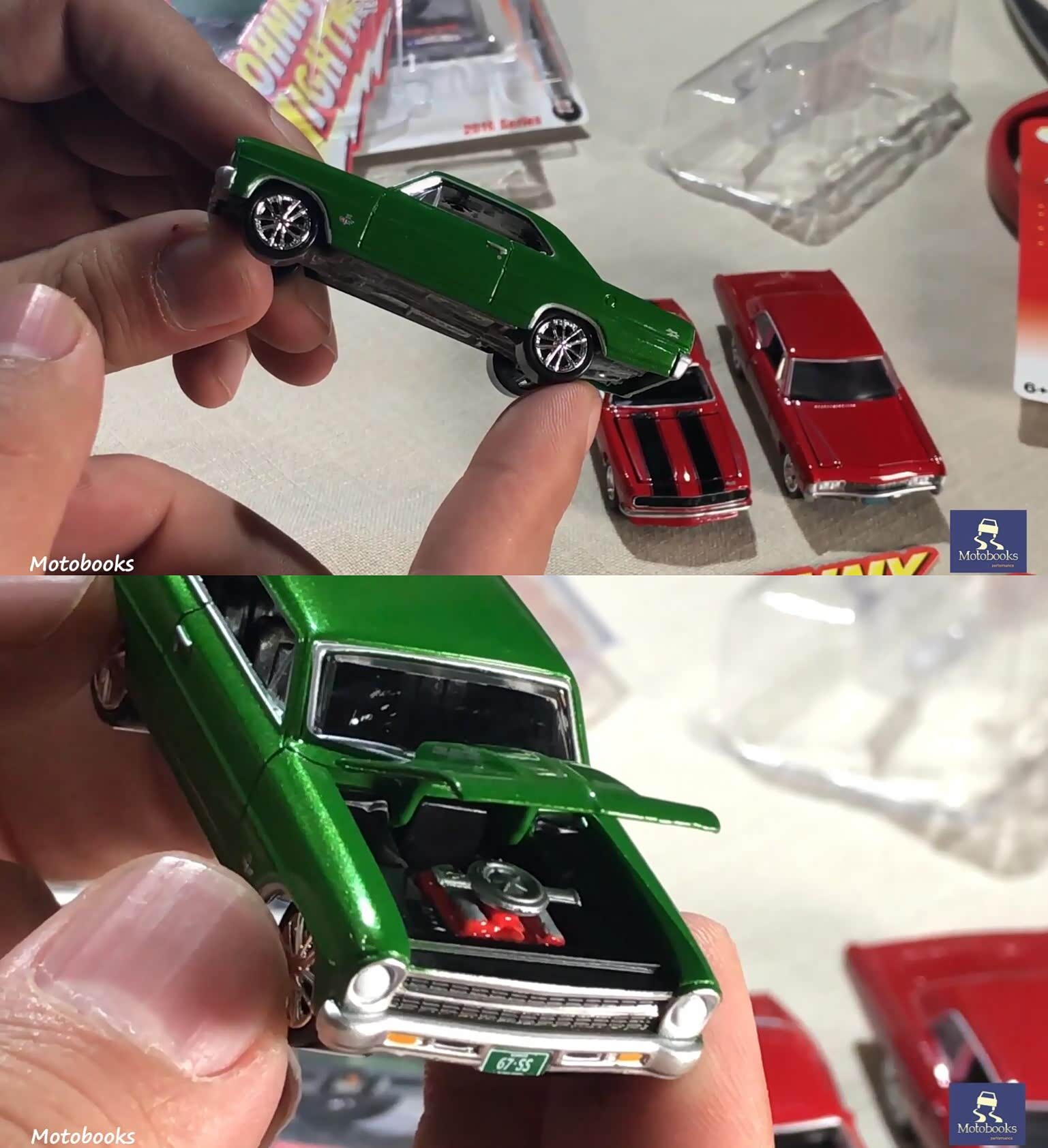 1967 Camaro Z28 & 1967 Nova SS:令我不解的是,即便出自同一套装,不同车型的工艺标准也不尽相同 - 这台 Camaro 是胶胎,而其他小车有的则选用塑料轮胎 - 塑料材质的轮胎更适合跑赛道。也许我对乔尼-闪电的了解不多,推测这套车里有复刻作品;Nova SS 则是一台“改装车”,炫酷的大尺寸镀铬轮毂按照收藏卡所示实车还原,十足的老墨风格 ... 更多小车细节介绍请看视频部分,同套其他三台小车将于下期节目分享!