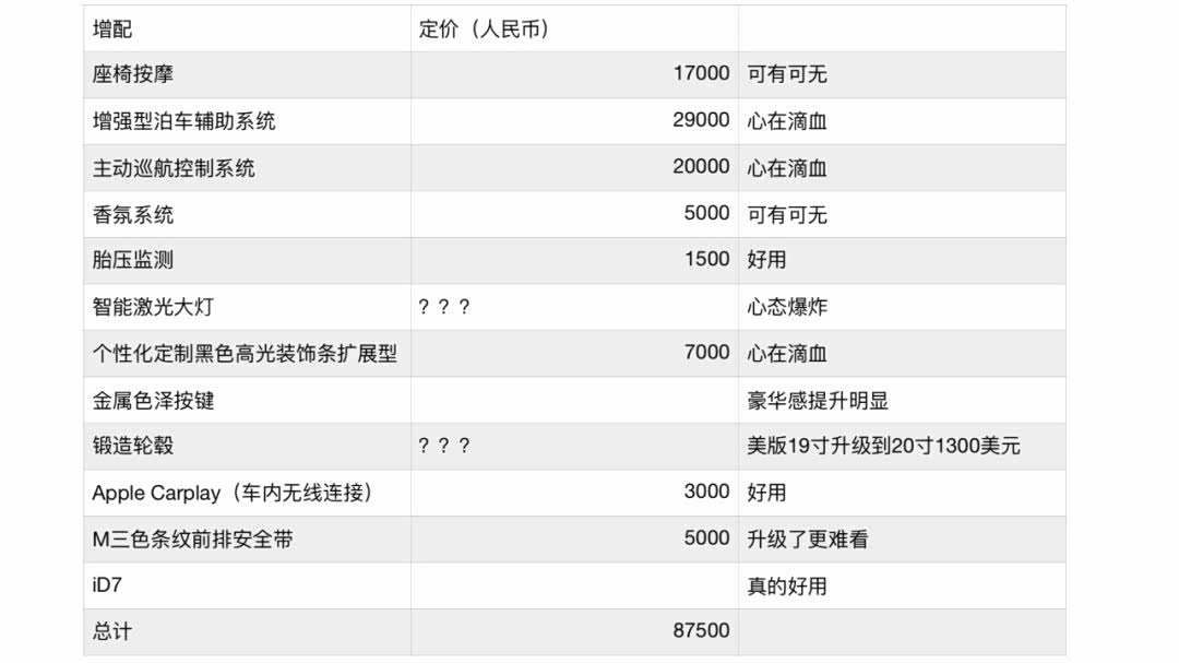 参考上表可知,差个陶瓷刹车,M5雷霆版已经把值得选配的都选上了。智能激光大灯在730的选配单上高达27000RMB的定价,想必若出现在M5的选配单上是远远超过这个数字的。个性化定制黑色高光装饰条扩展性更是干脆就把原厂MP套件的尾翼、亮黑侧腮、亮黑中网一股脑全整上了,光是这项升级,需要7000RMB…...
