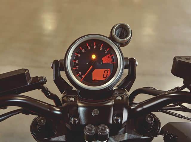 排气管采用了四合一和二合四系统,这样可以在动力上提供一个无缝衔接,同时另外一个作用在于它能够保持整车较为雄壮的外观。VMAX车上有一个发光的多功能显示器,在靠近车头的位置,它能够显示时间、燃油表、油量、变速器档位、冷却液温度、以及秒表。而仪表盘则是一个模拟表盘和led的组合表盘,包括提供指针转速、数字转速、以及换挡的正时指示器等。