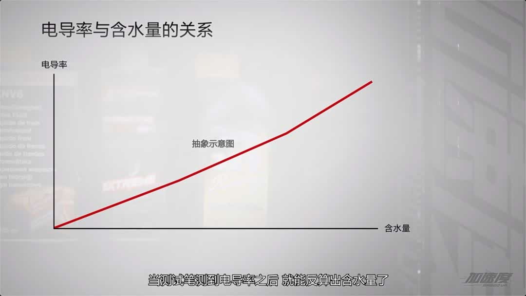 含水量测试笔通过制动液里面的电导率来判断水的含量的。厂商采集了主流制动液不同含水量的电导率,并把这个数据输入到测试笔中,当测试笔测到电导率之后,就能反算出含水量了。