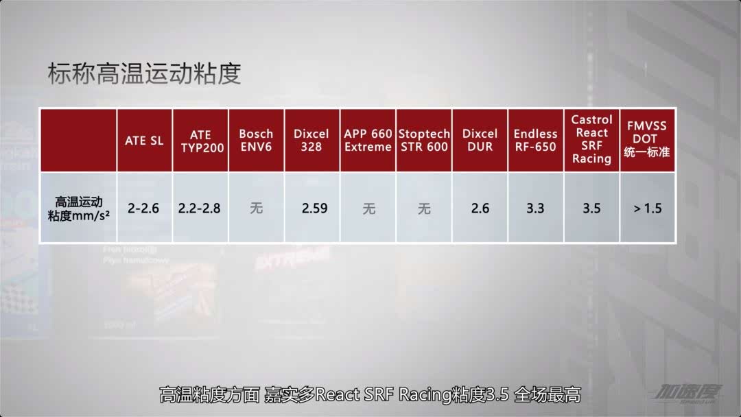 高温运动粘度反应的是高温的性能,制动液在制动过程中能够在活塞与活塞缸之间形成一层油膜,避免两者直接接触所造成的磨损,起到保护零件的作用。为了确保高温下赛车系统的正常工作,一般赛车用的刹车油高温粘度都很高。相信很多朋友可能知道赛车都倾向于使用高粘度机油,这点在选择刹车油上也一样。