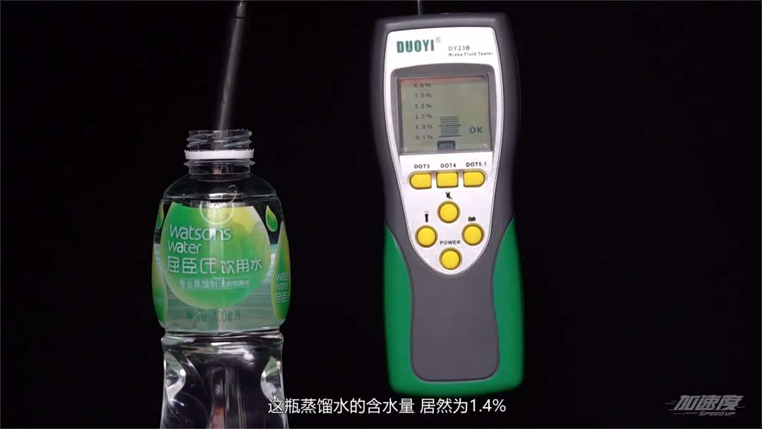 高性能的制动液配方与主流制动液差距较大,所以主流制动液含水量与电导率的关系在高性能制动液上不一定通用,328出厂含水量再高也不可能高到1%,而SRF这种不导电的硅酯型制动液测出0%的含水量则是轻轻松松。制动液的电导率会随着温度的变化而变化,所以不同温度测出的含水量也会有很大区别,你猜测试笔厂家是用什么温度做的测试呢?蒸馏水中的电解质不多,所以电导率也不高,含水量的测试结果也不高。总之,含水量测试笔,在原厂制动液上可能会有比较好的准度,在高性能制动液中几乎没有什么参考意义。