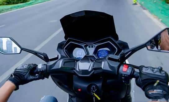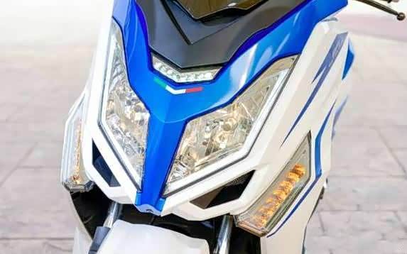 在外观方面,金城欧宝路JC200T的整体外观还是十分亮眼的,与国内同级别高端大绵羊外观基本一致。整车采用犀利的线条,而配色采用蓝白相间,让人感觉十分时尚。前脸采用菱形的LED大灯和转向灯,感觉十分犀利。而仪表采用的是一款汽车级液晶LCD数字仪表,时速、转速、里程、油量等基本信息十分齐全,显示也十分清晰。
