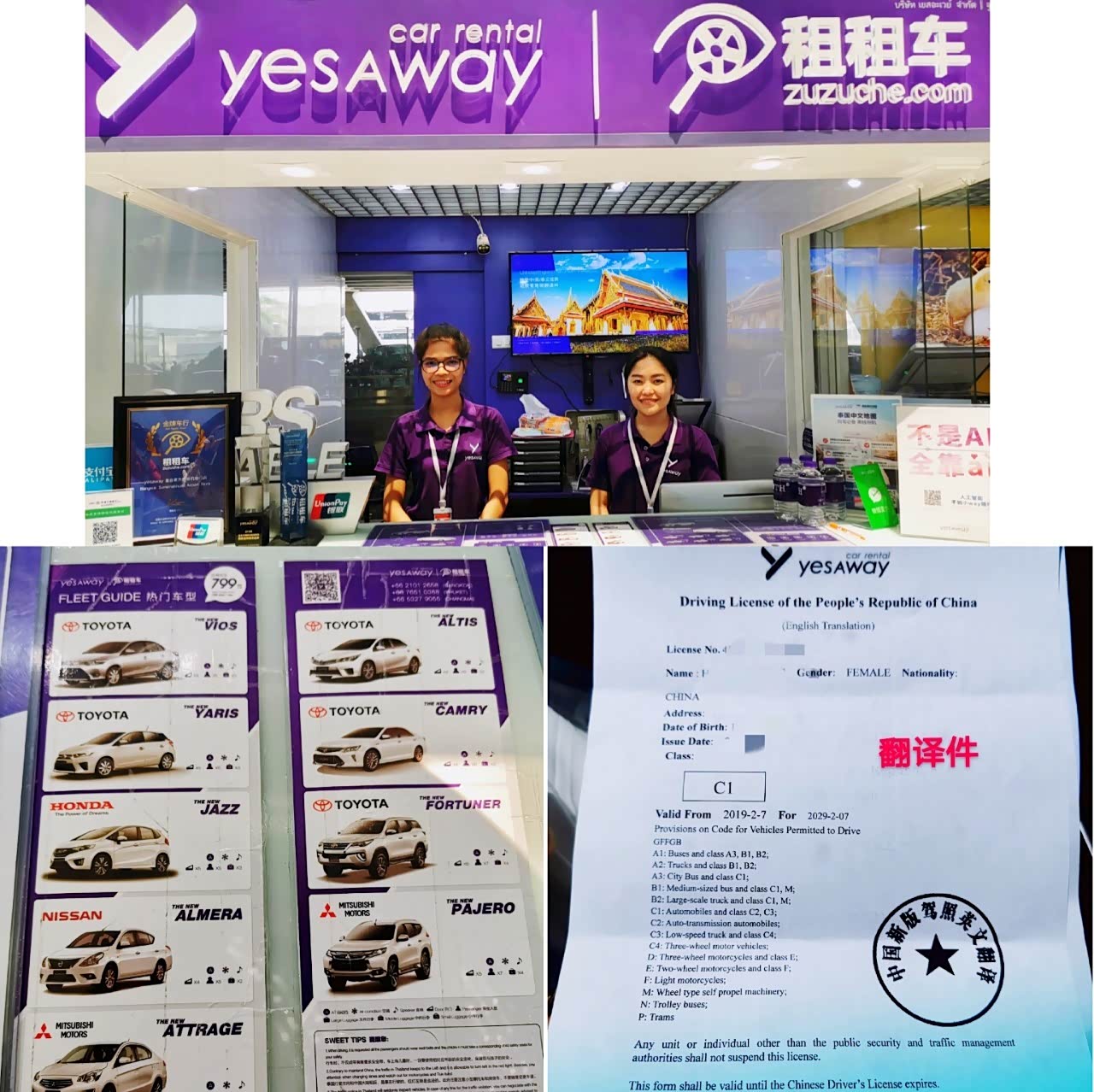 这次租车对他们家的工作人员态度印象很深,小姐姐们温和又细心,因为泰国是属于右舵车,所以她还给我们先介绍一遍车辆如何使用以及配备了车载充电线和几瓶水,好贴心~