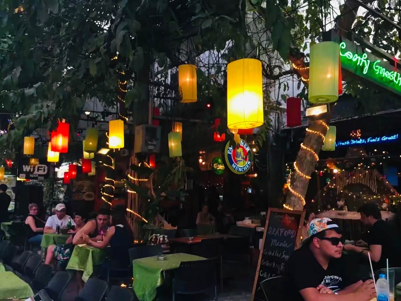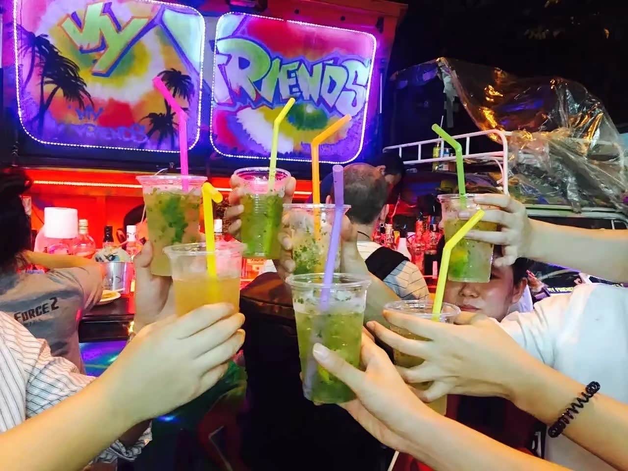 吃饱回到酒店,正好是落日时分,在酒店外的沙滩上看看日落散散步,去礁石拍拍照,旅行大概就是如此吧。晚餐过后去逛逛芭提雅的夜市,路边一排排都是小酒吧,很多老外在这里聚会。