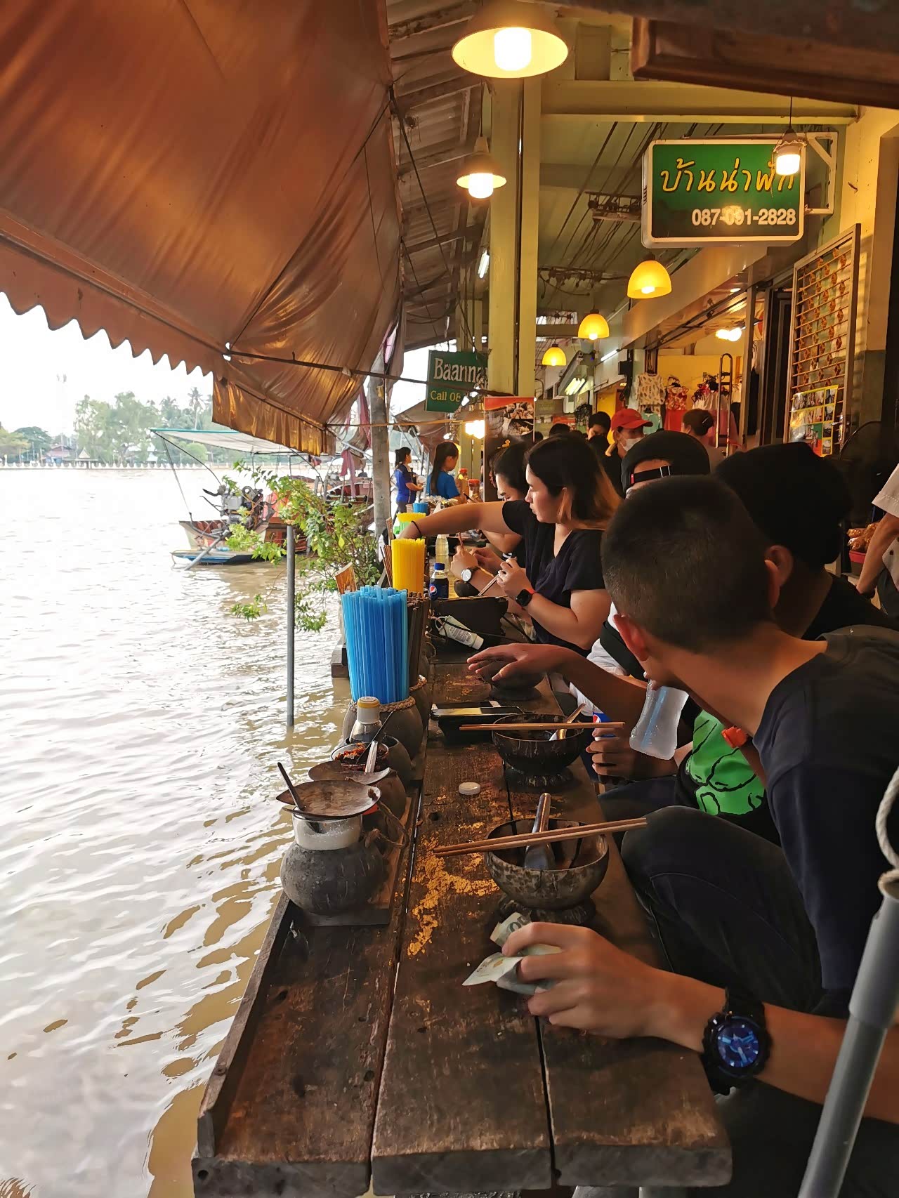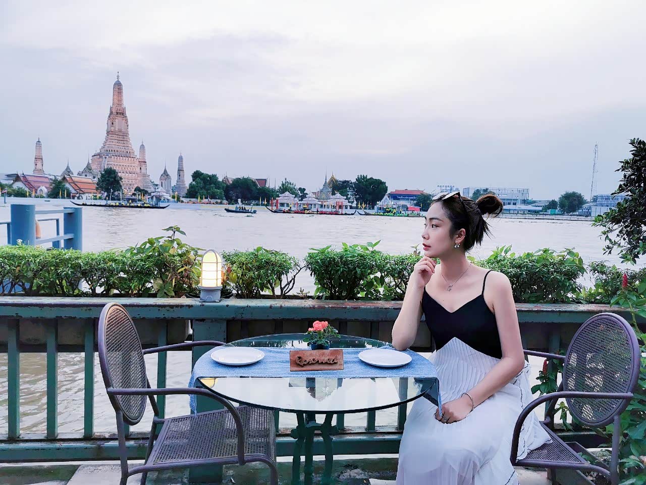 看了一下后大家都饿得不行了,走到黎明寺的对岸餐厅,坐在河畔看着赛龙舟,夕阳渐落,享受泰餐,这边的餐厅风景好的地方都需要提前预定的,好在我们来得还算早,正好有一个空桌,不然得多遗憾呀。