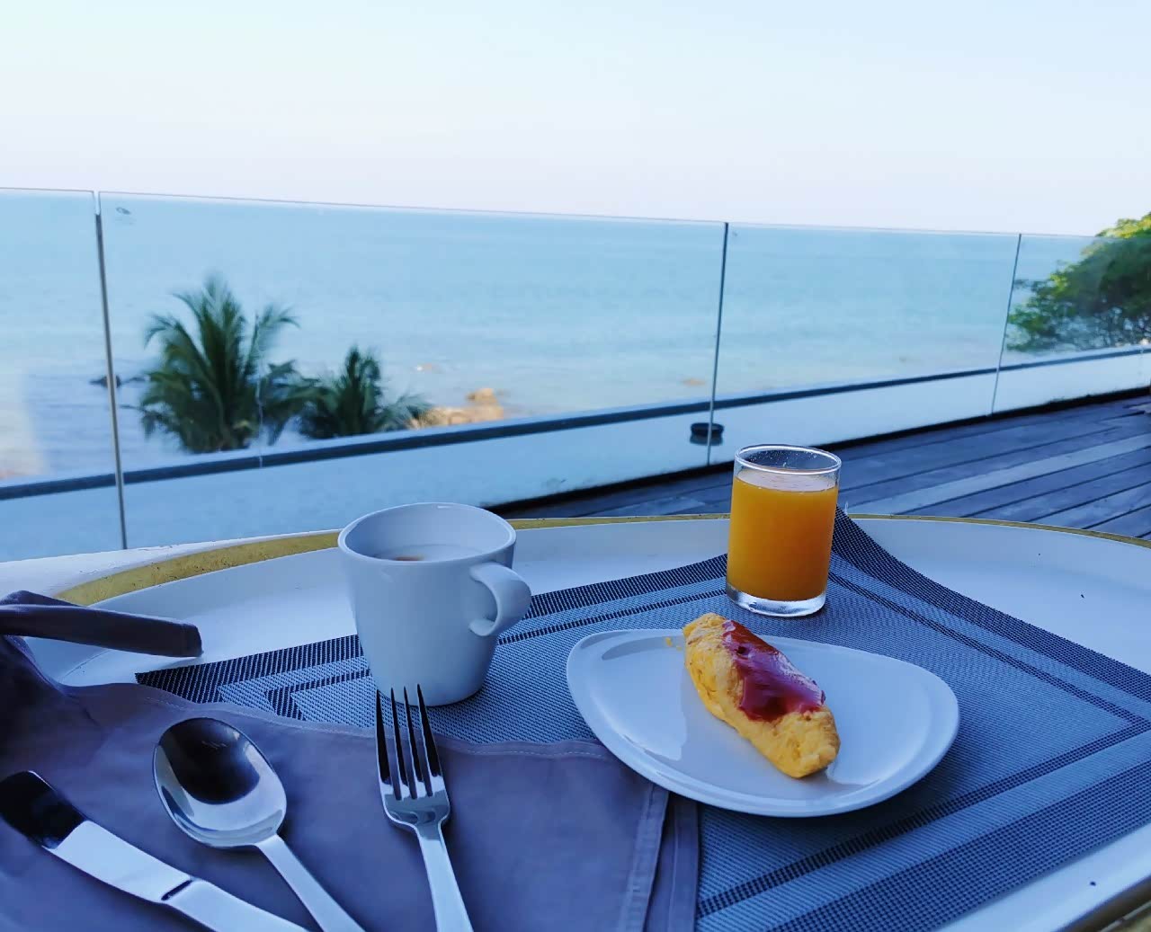 早餐品种丰富,居然还有汤粉,大概是专为中国人提供的吧~吃着早餐吹着海风看着太阳一点点升起,度假的舒服惬意就应该是如此吧。