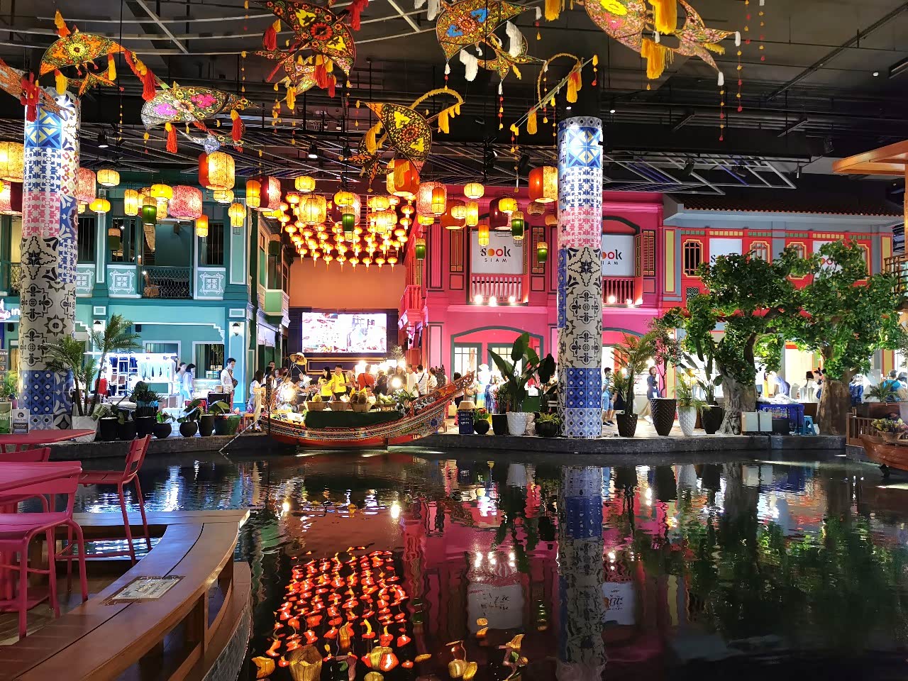 早上逛了一下最新的商场,位于湄南河边的iconsiam,商场停车免费。这个商场的设计是把水上市场搬到了商场里,非常之特别。