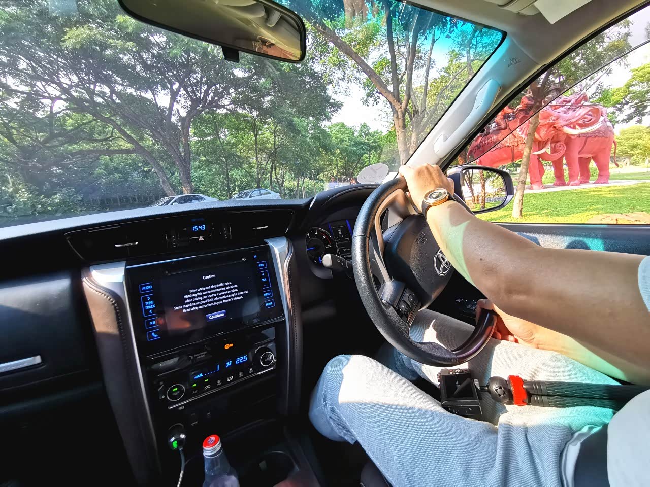 这台大七座的柴油版丰田Fortuner,跟其他普通七座SUV一样,开起来都有点像在开船的感觉,2.0L的动力支撑这台大车,相对来说动力是没有那么激进的。好在曼谷的车也比较多,开不了那么快。