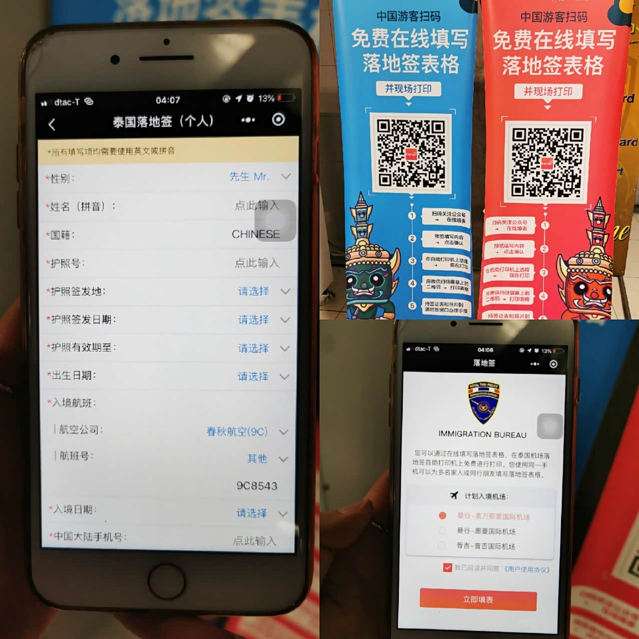 泰国时间凌晨四点才到达泰国索万那普机场,飞机上填好入境卡。关于落地签,现在已经有机器只要扫一扫在手机上填好后机器就可以打印出来,还可以选择传统的手写方式。