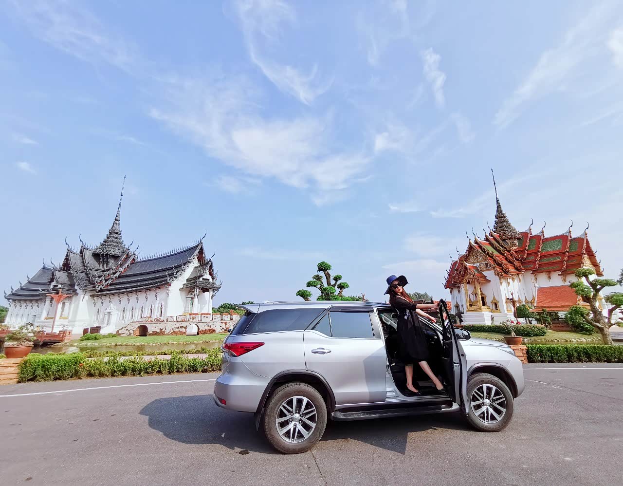 这里有泰国各地最著名的建筑、纪念碑、和庙宇的缩小复制模型。这个园区非常大,如果不是自驾游的话,必须要在门口租自行车或者游览车。这么热的天,骑自行车真的会中暑吧,游览车又没有空调可以吹,这时候自驾游的优势就体现出来了,一路开车一路逛,看到好看的风景就下来拍照,走走停停。