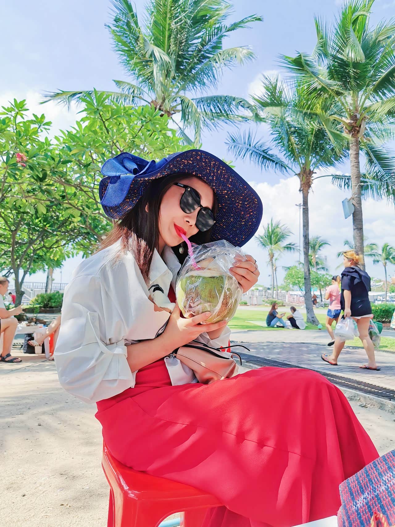 买完海鲜后去入口的店加工,这些加工店都非常非常地简陋……我们一开始是非常犹豫不决的,因为看起来都不那么干净,但是人也太多了吧,只好选择相信了。租了席子铺在草地上,席地而坐,野外的海鲜午餐就开始了,喝着椰子水吹着海风,享受午后的暖日以及眼前的海鲜美食,这样的感觉真的是前所未有。
