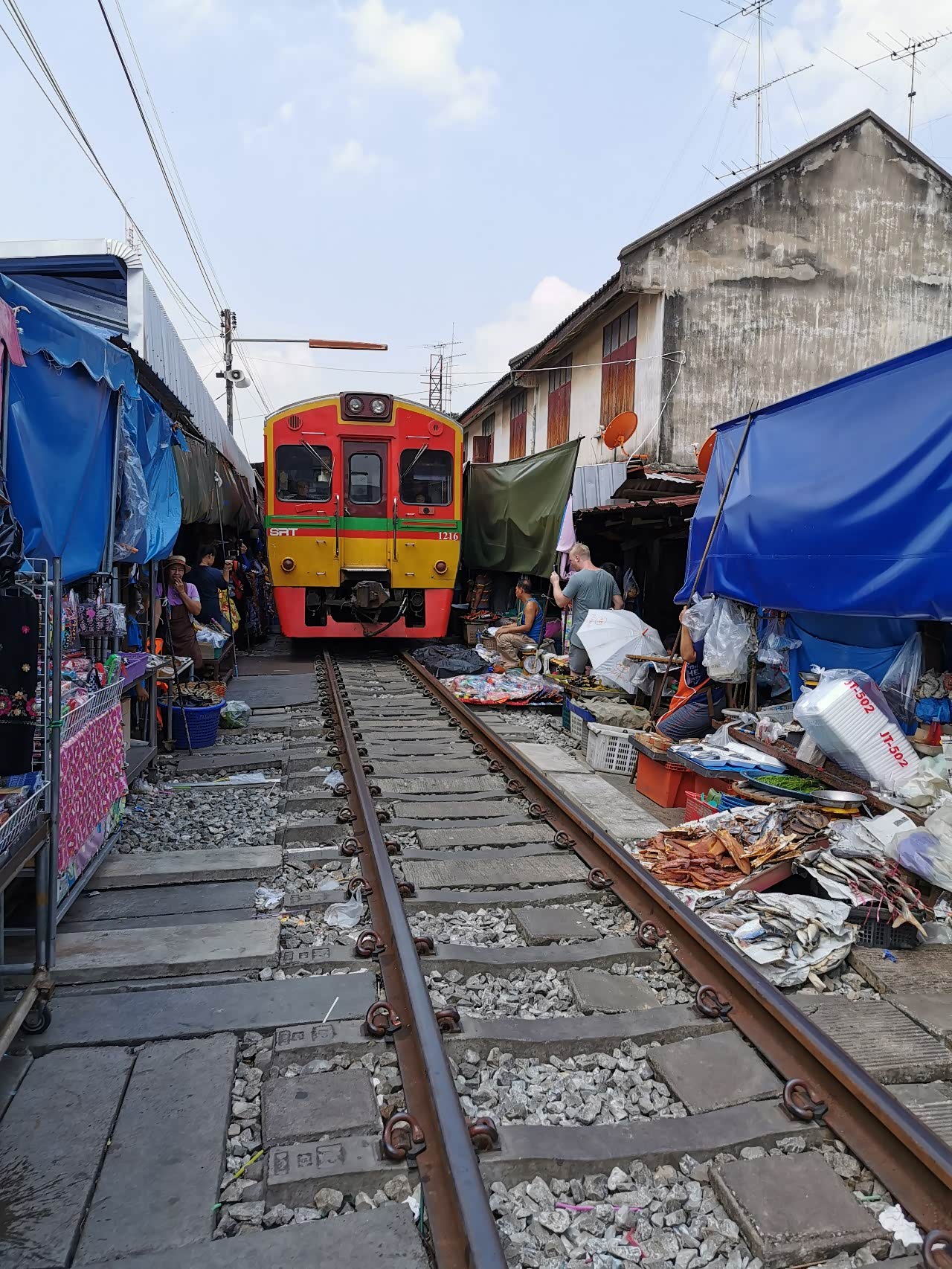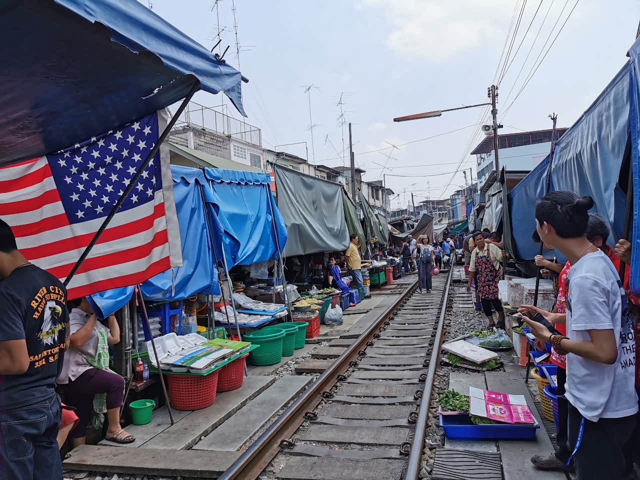 今天去的都是很著名的网红景点,美功铁道市场距离酒店大概有80公里的路程,大概要开一个小时的车,它又被称作最牛菜市场。由于菜摊分布在火车轨道的两侧,当火车经过的时候,他们就收摊,火车开走后又重新铺开摊子,速度十分快。