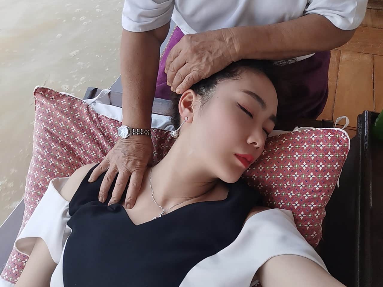 这个游船按摩的体验简直是这几日的最佳体验,游船在慢慢地划着,微风习习,一边看着河道两旁不同的风景,此刻的阳光都变得很温柔,一边享受着力道适中的传统按摩,不知不觉就这样睡着了……