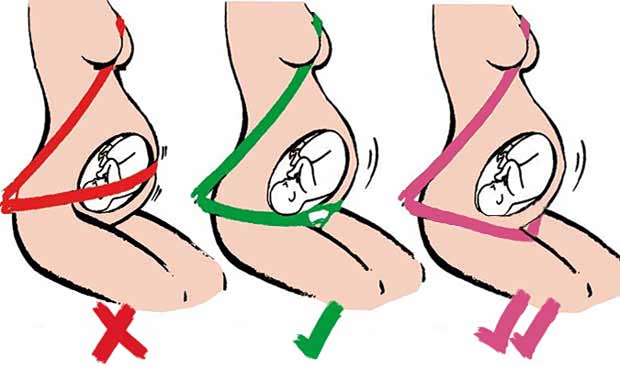 2. 如果孕妇坐在车辆前排,一定要将腹部与安全气囊保持安全距离,胸骨与方向盘或中控台的距离保持在10英寸(约25.4厘米)以上。此外还要注意,随着胎儿长大,座椅也要逐步向后移动。